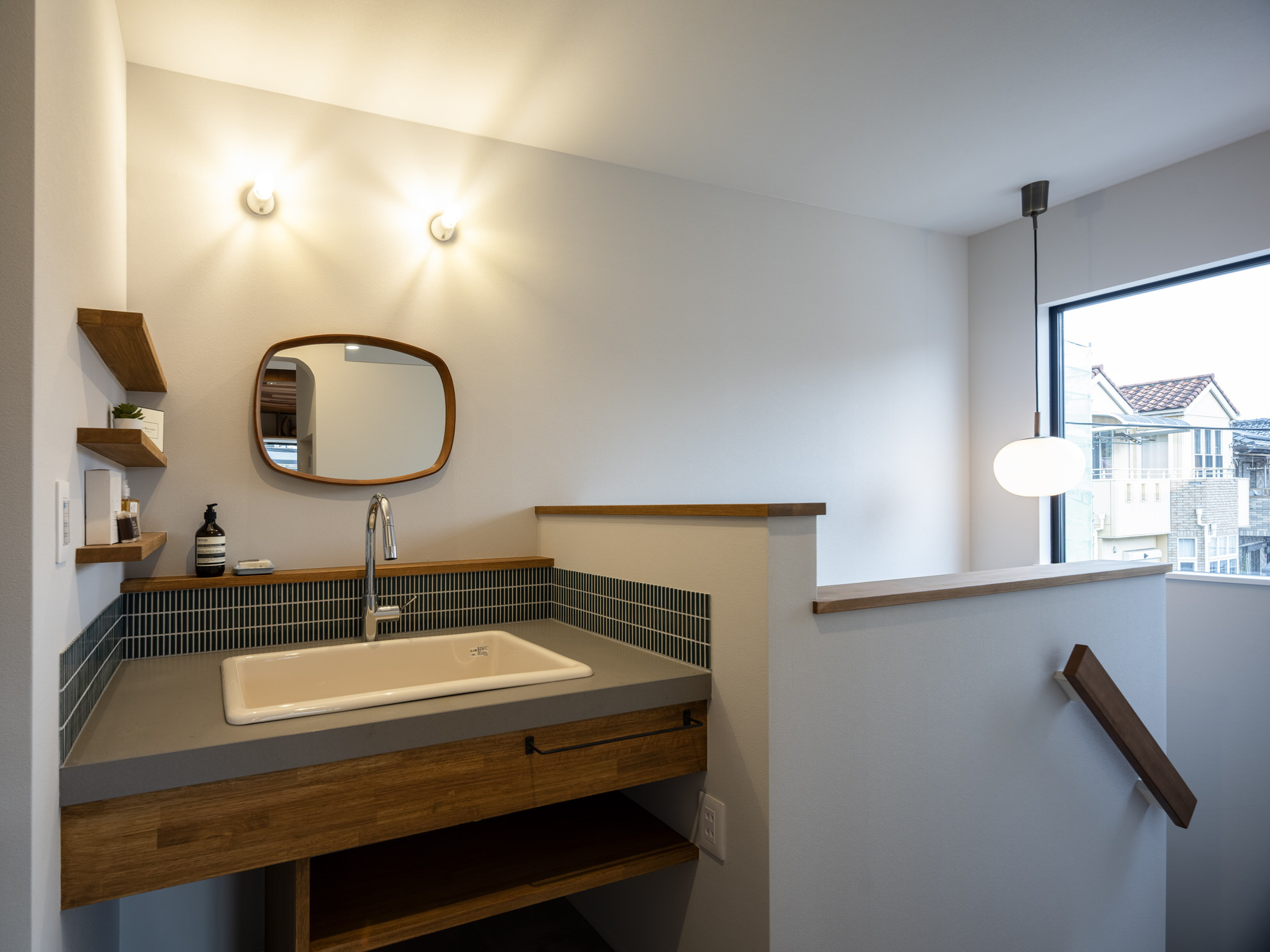 造作洗面では、日々のリズムを整えるひとときを。